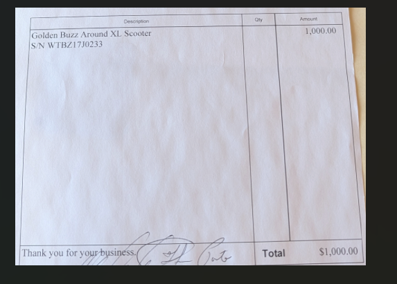 Original cost - $1000 - see invoice
