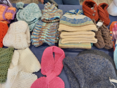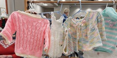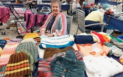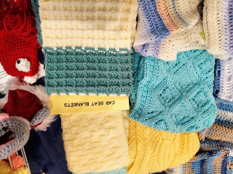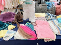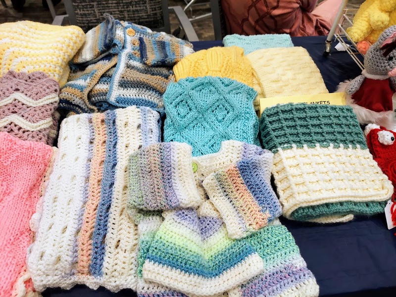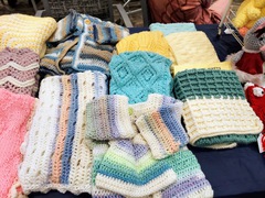 AFGHANS, WALKER BAGS, KNITTED AND CROCHETED CLOTHING,